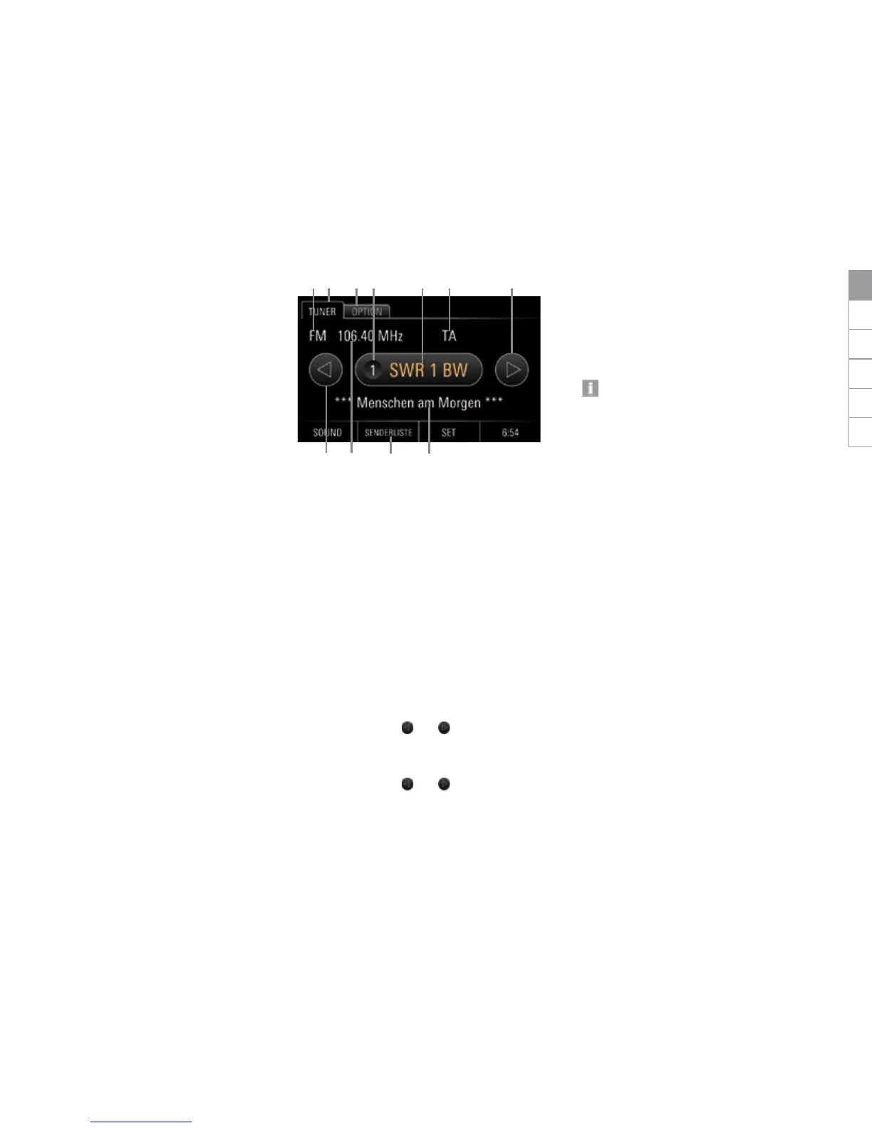 Bedienelemente der Radiofunktion