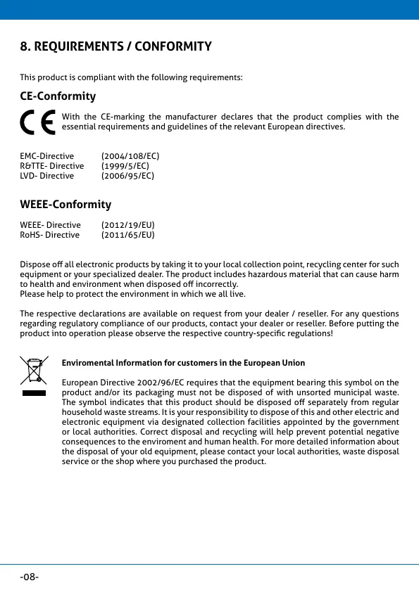 European Directive 2002/96/EC requires that the equipment bearing this symbol on the