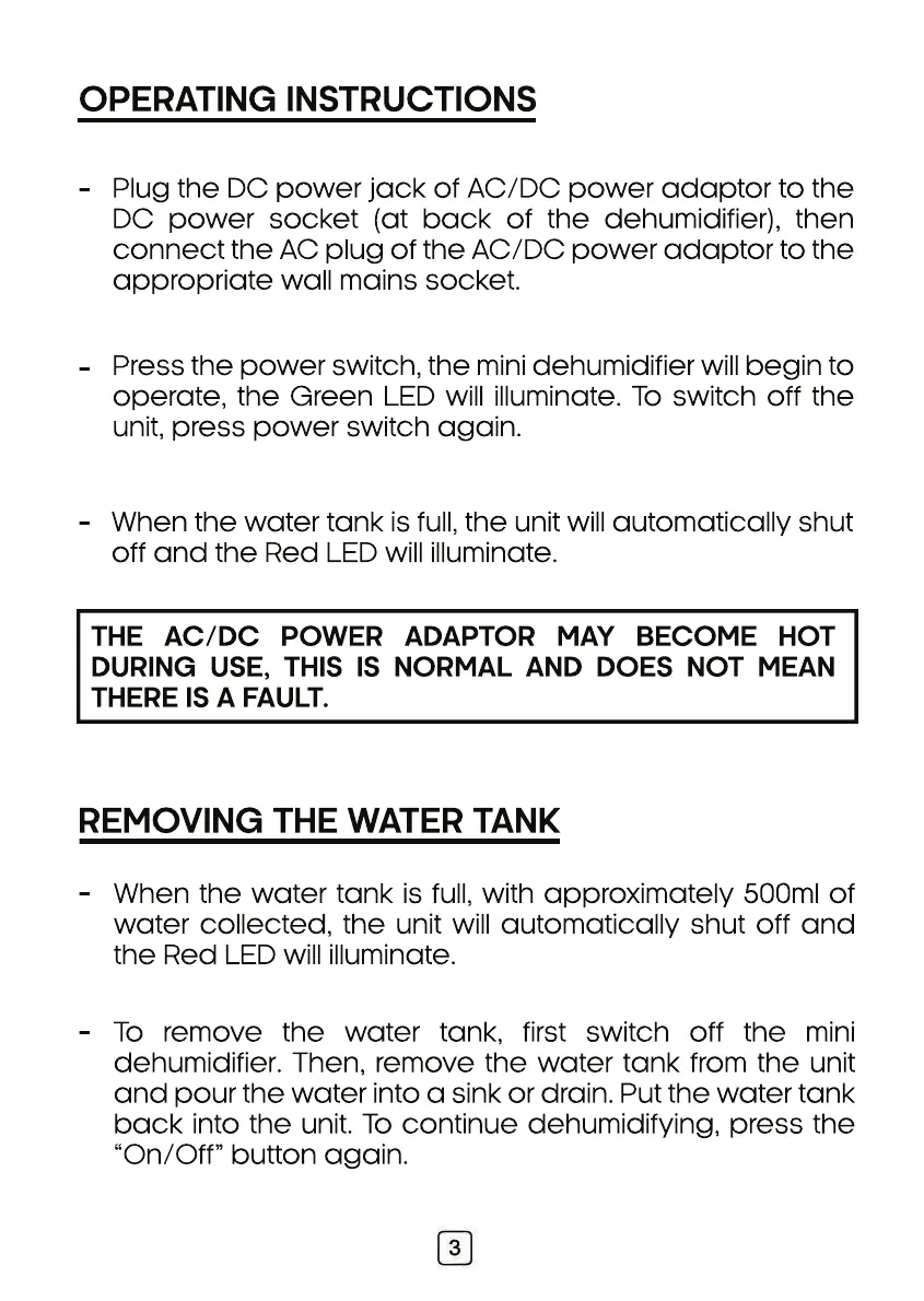 dehumidifier. Then, remove the water tank from the unit