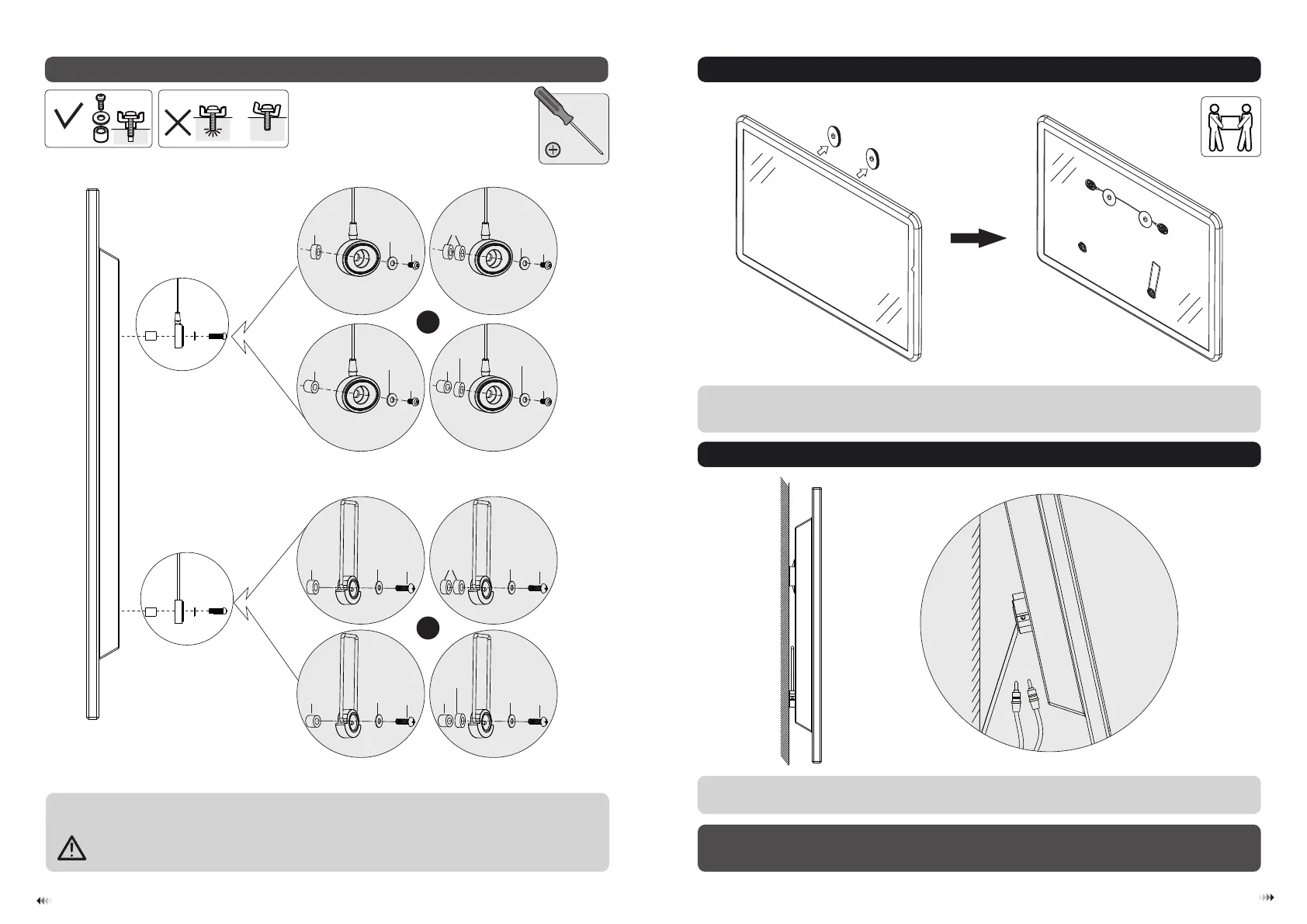 Note: Choose the appropriate screws, washers and spacers (if necessary) according to the type of screen.