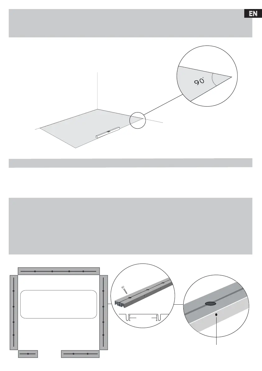 1.2. Make sure that the corners where the floor panels will be installed form an angle of 90º.