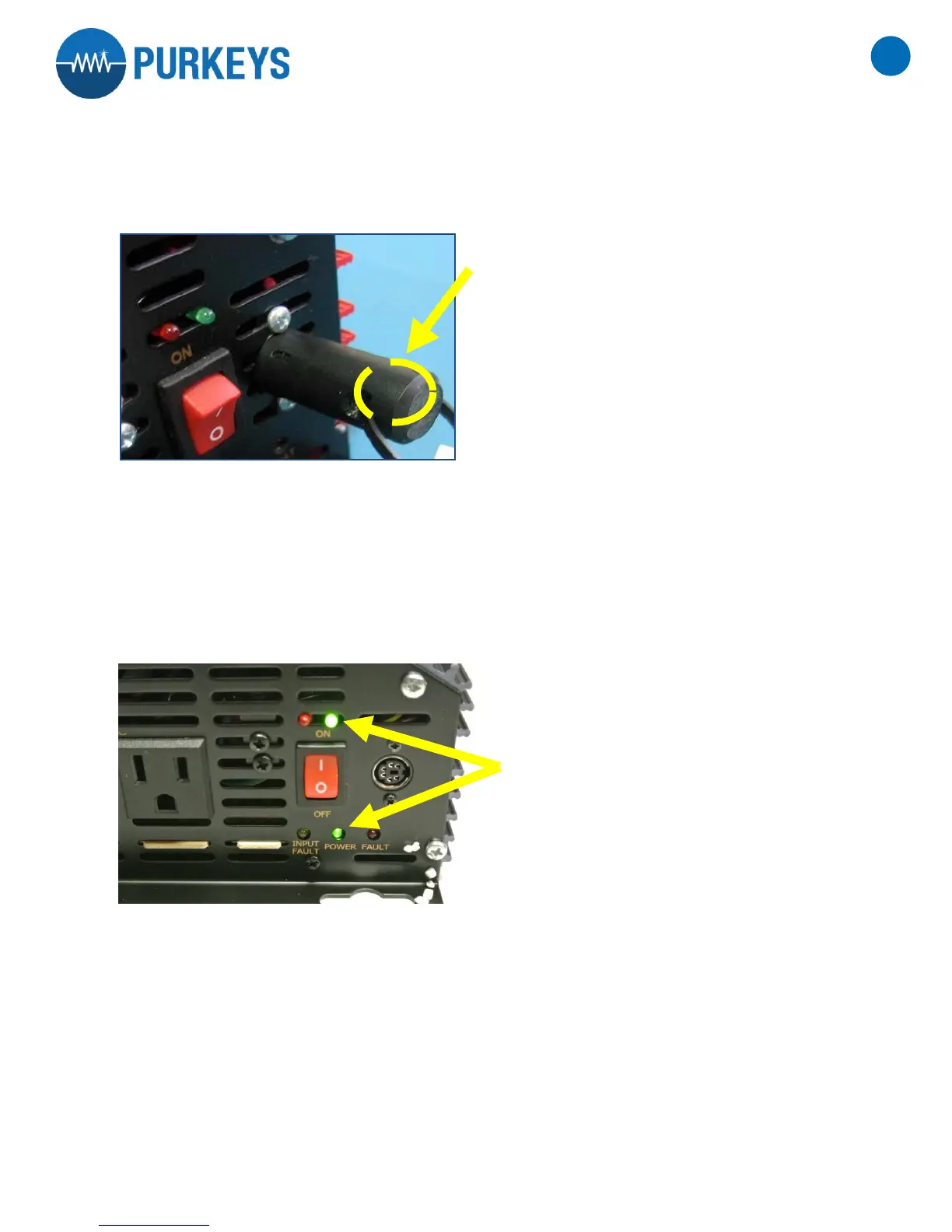 9. Turn the inverter off and then back on. Both green lights should come on and the inverter will turn on. Reference