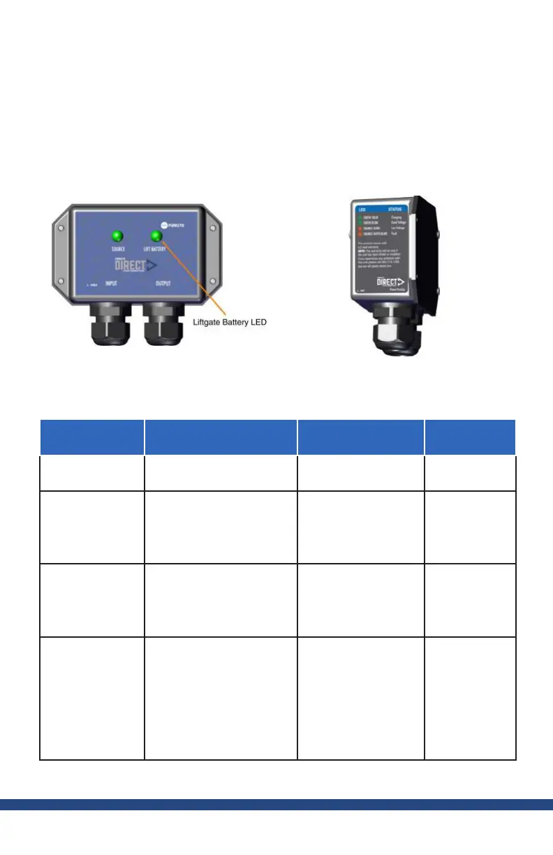 for location of Liftgate Battery LED; see Figure 13 for LED status