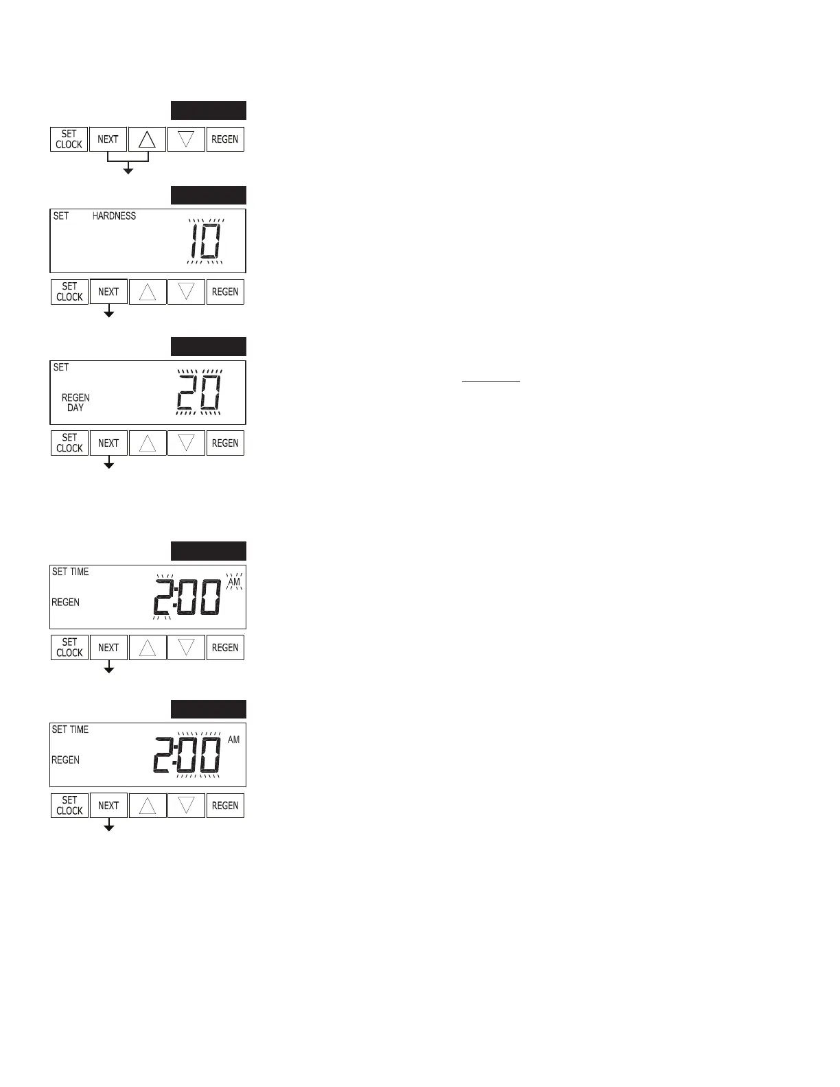 “REGEN on 0 GAL” if “on 0” is selected in Step 10S or Step 8F. Press NEXT to go to