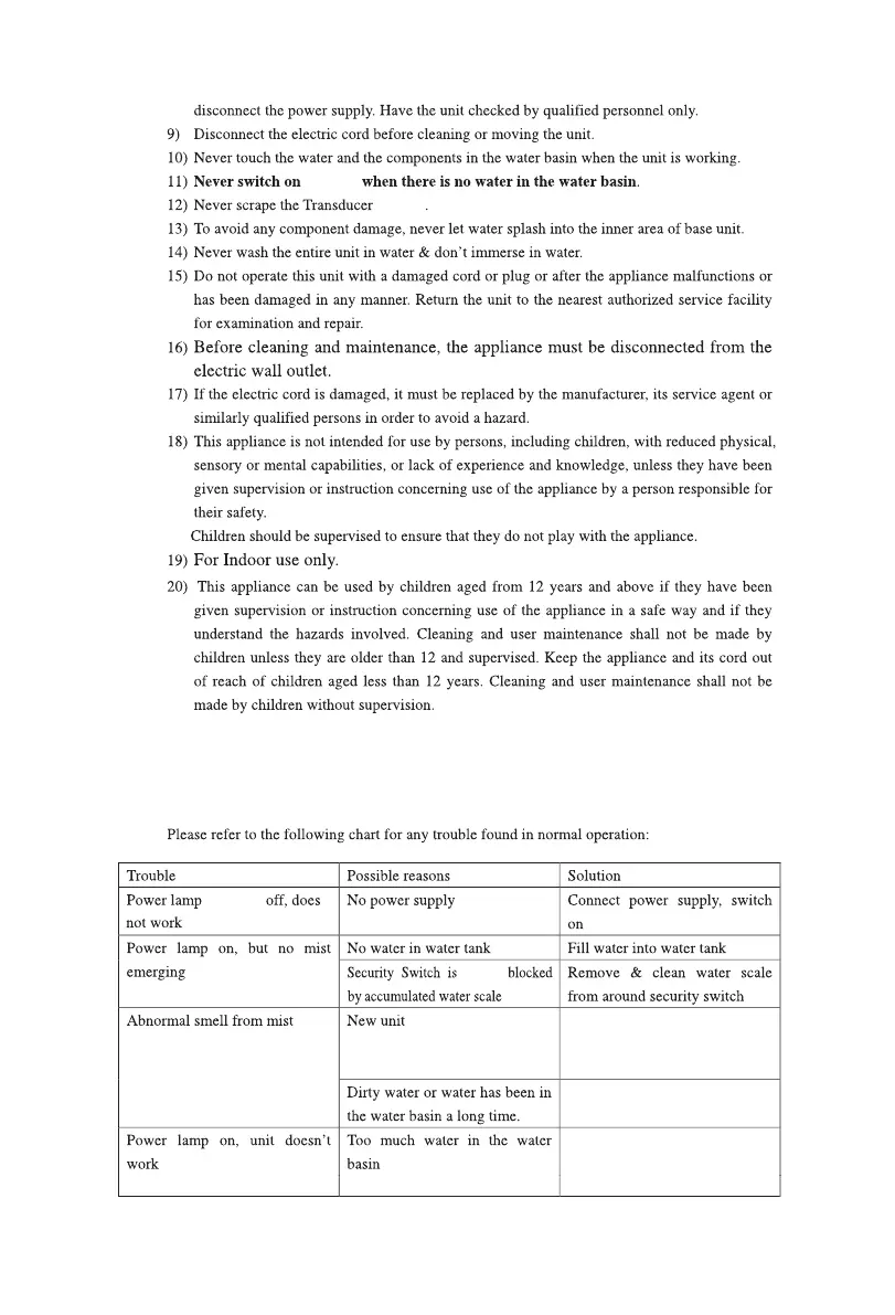 *Troubleshooting Guide Chart: