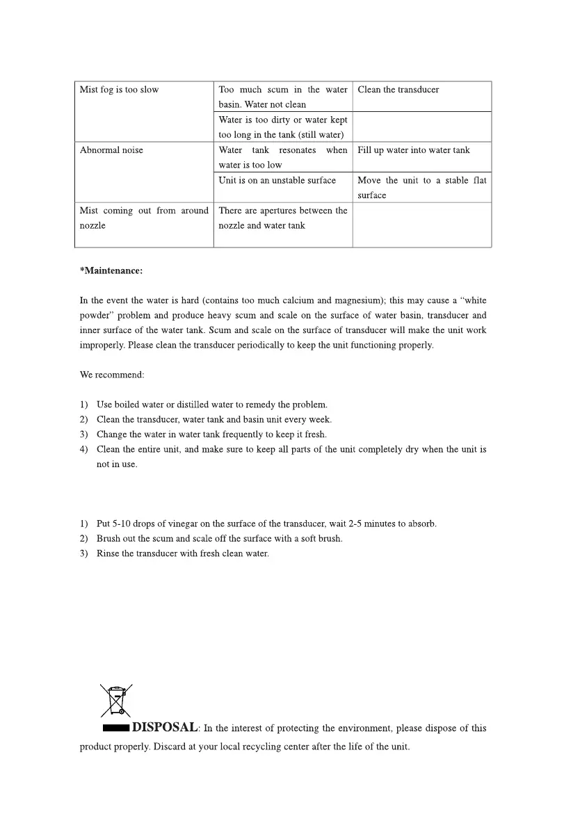 1) Clean the water basin with soft cloth and the vinegar if there is scum in it.