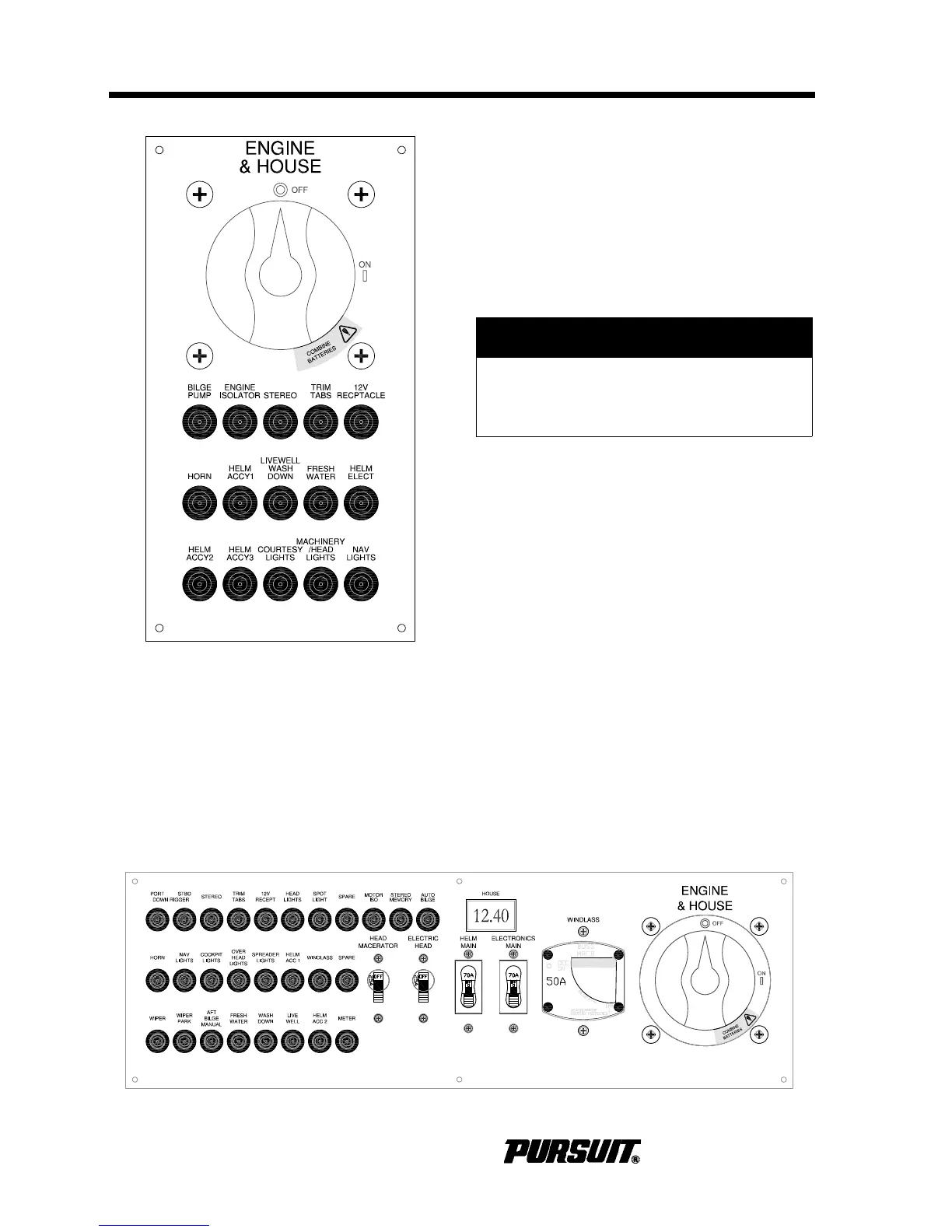 Supplies the 12-volt current to helm panel.