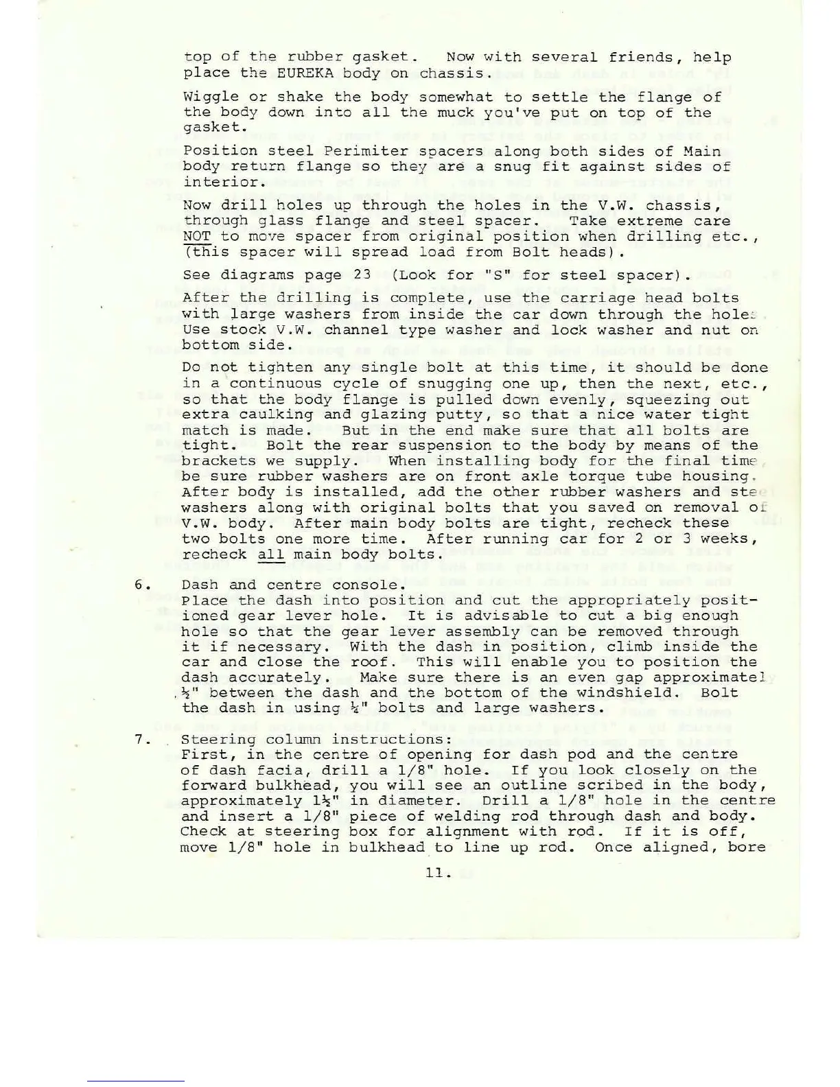 Purvis Eureka - Constructing the EUREKA: Body Fitting and Dash Installation; Fitting the EUREKA Body to Chassis; Dash and Centre Console Installation; Steering Column Alignment