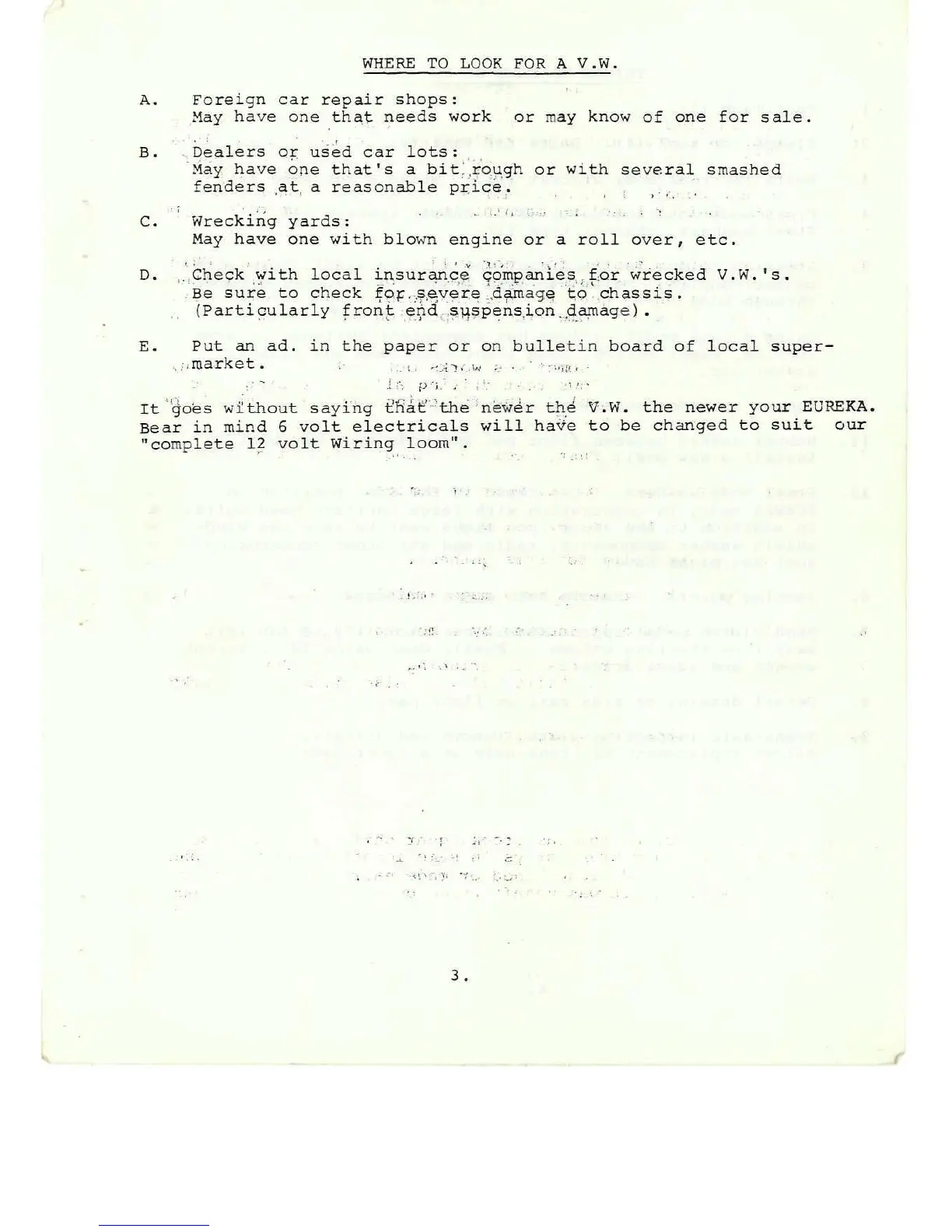 Purvis Eureka - Sourcing a Volkswagen Vehicle; Sources for Used VW Beetles; Electrical System Considerations