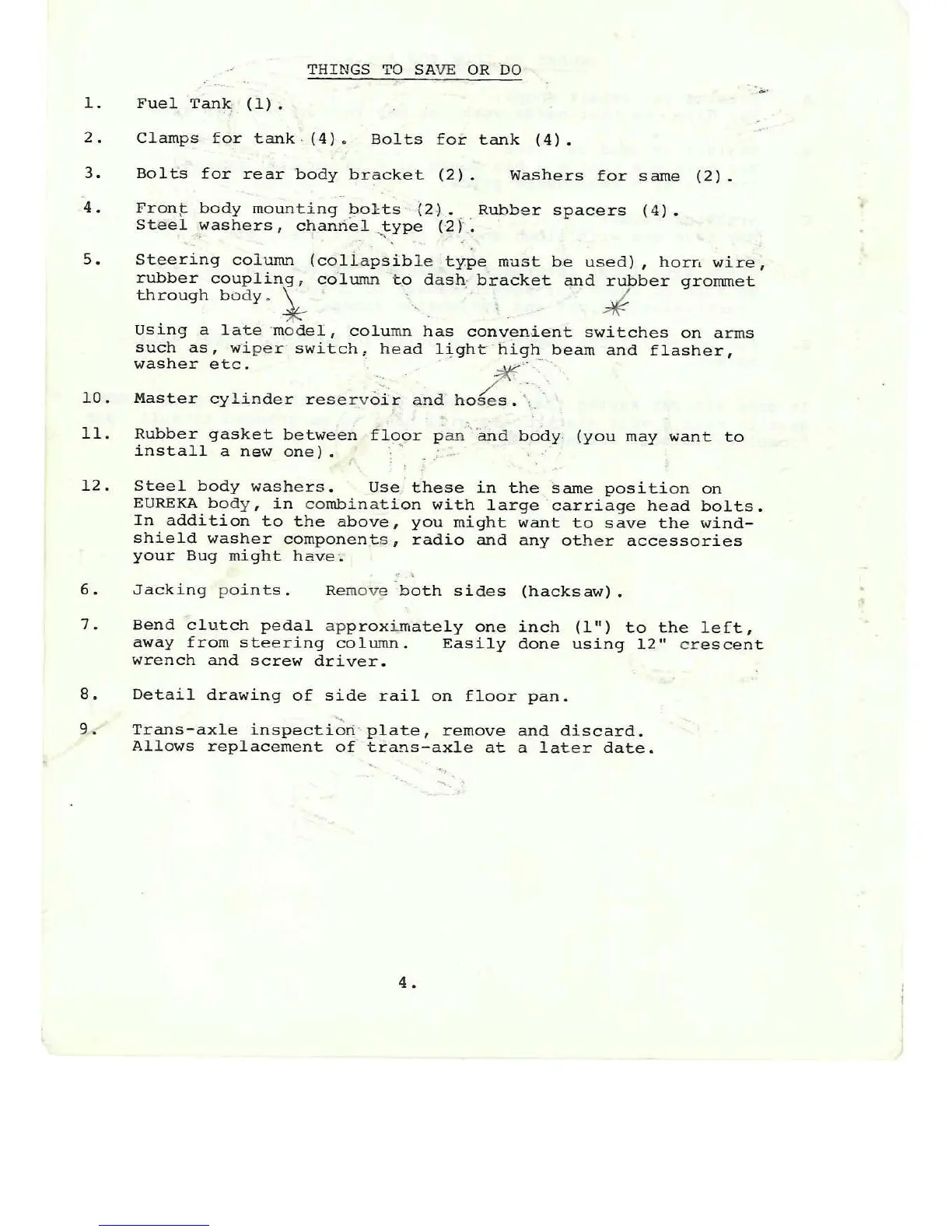 Purvis Eureka - Salvaging Parts from the VW Chassis; Essential Parts to Retain; Modifications to VW Components