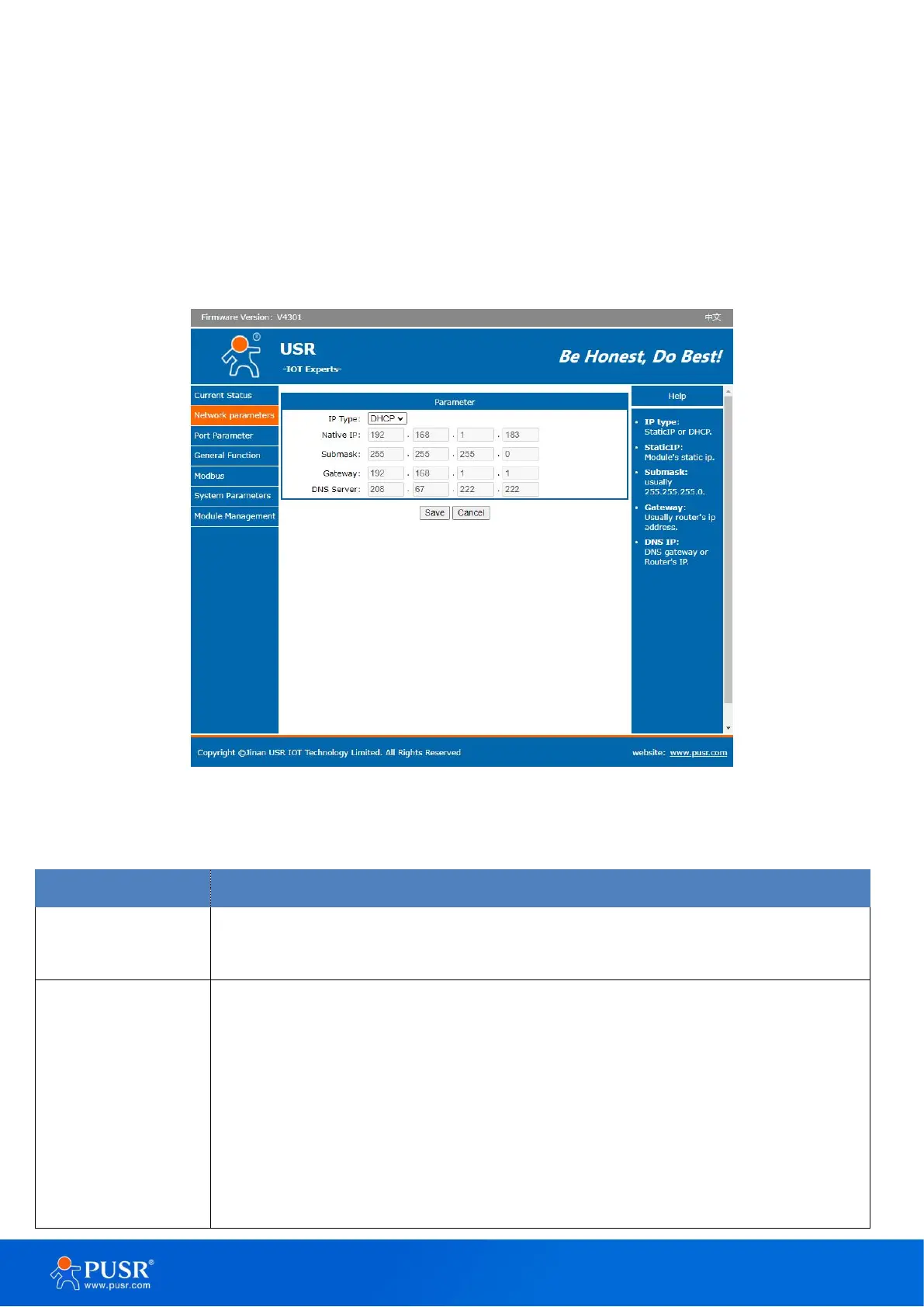 Table 7. Detail description of IP settings