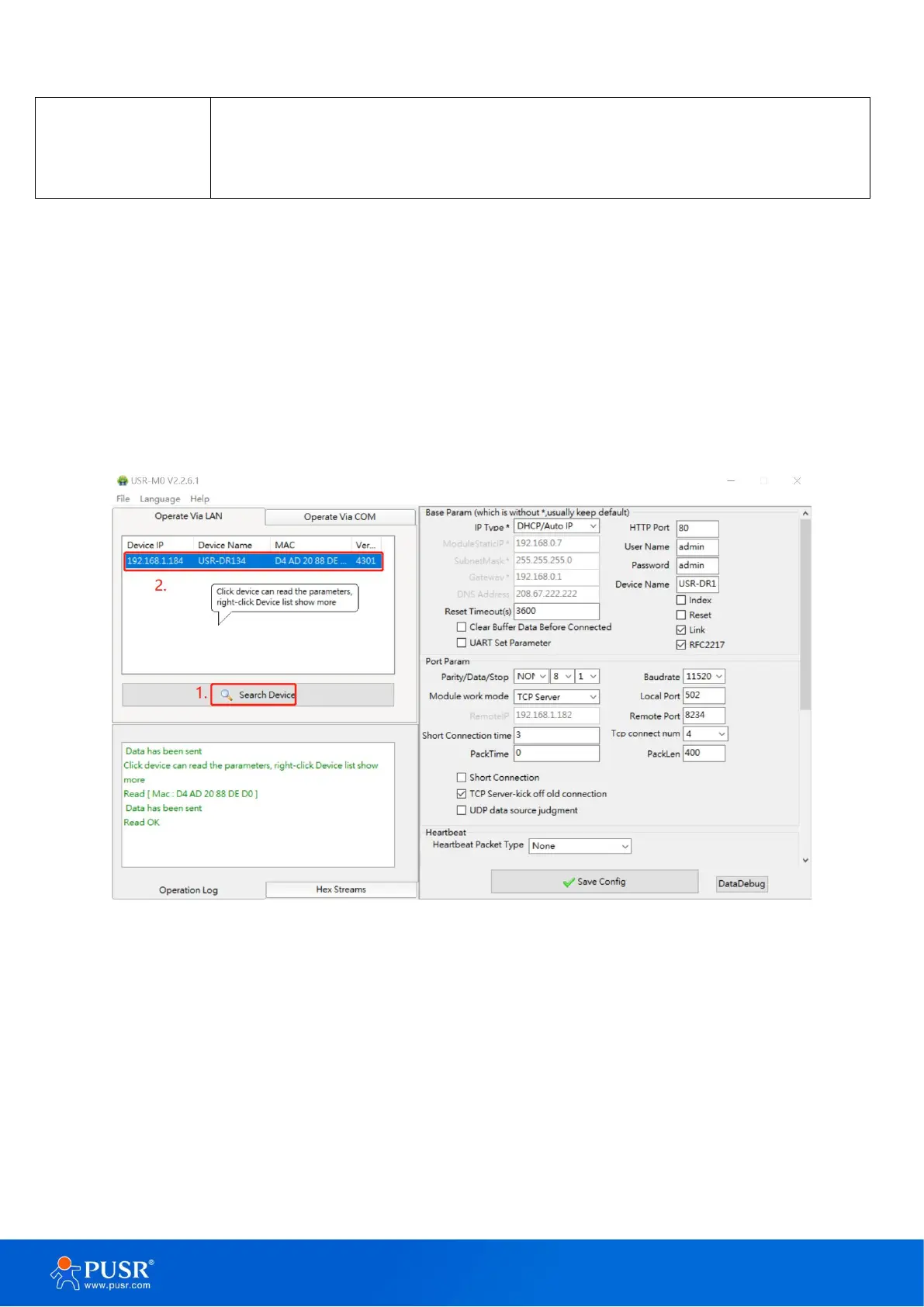 Run the config software, if the USR-DR13X Serial Device Server is already connected to the same gateway as