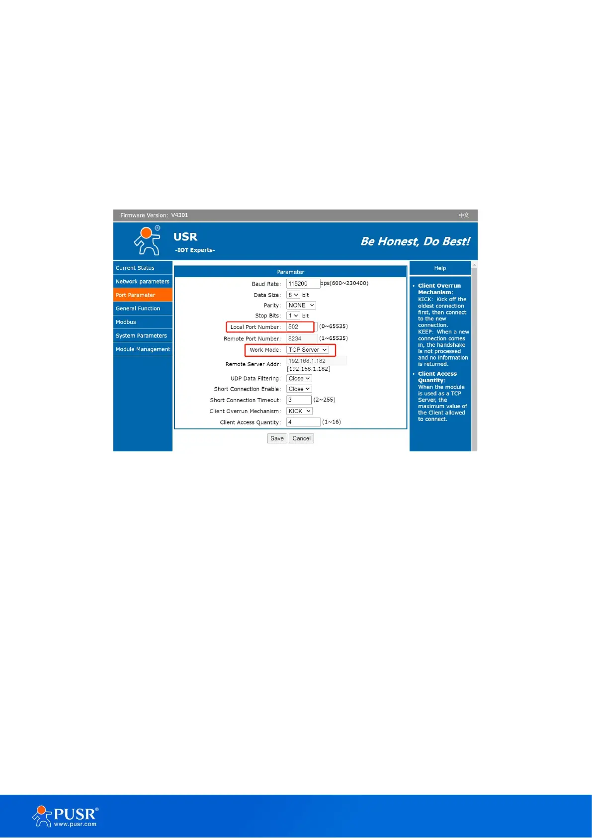 When the device work as TCP server, it allows up to 16 clients to access. The default is 4. We can test it with test