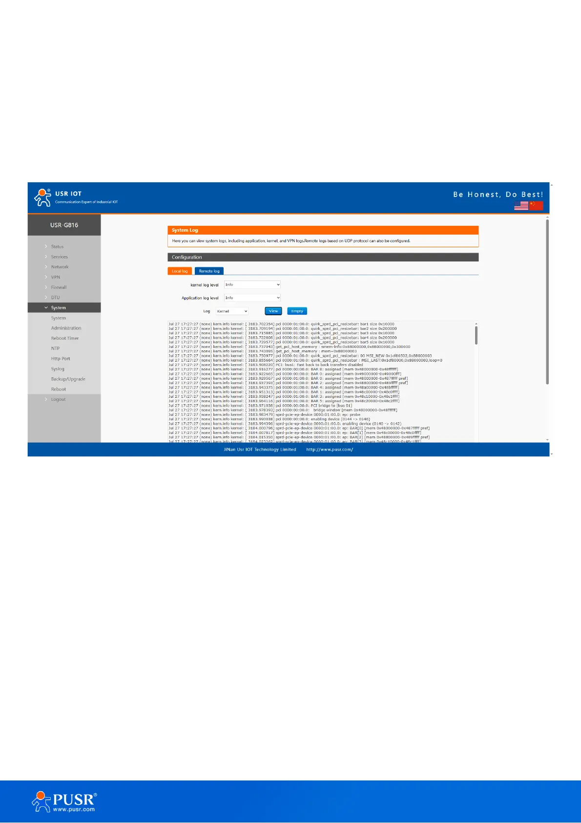 Figure 9. Local system log