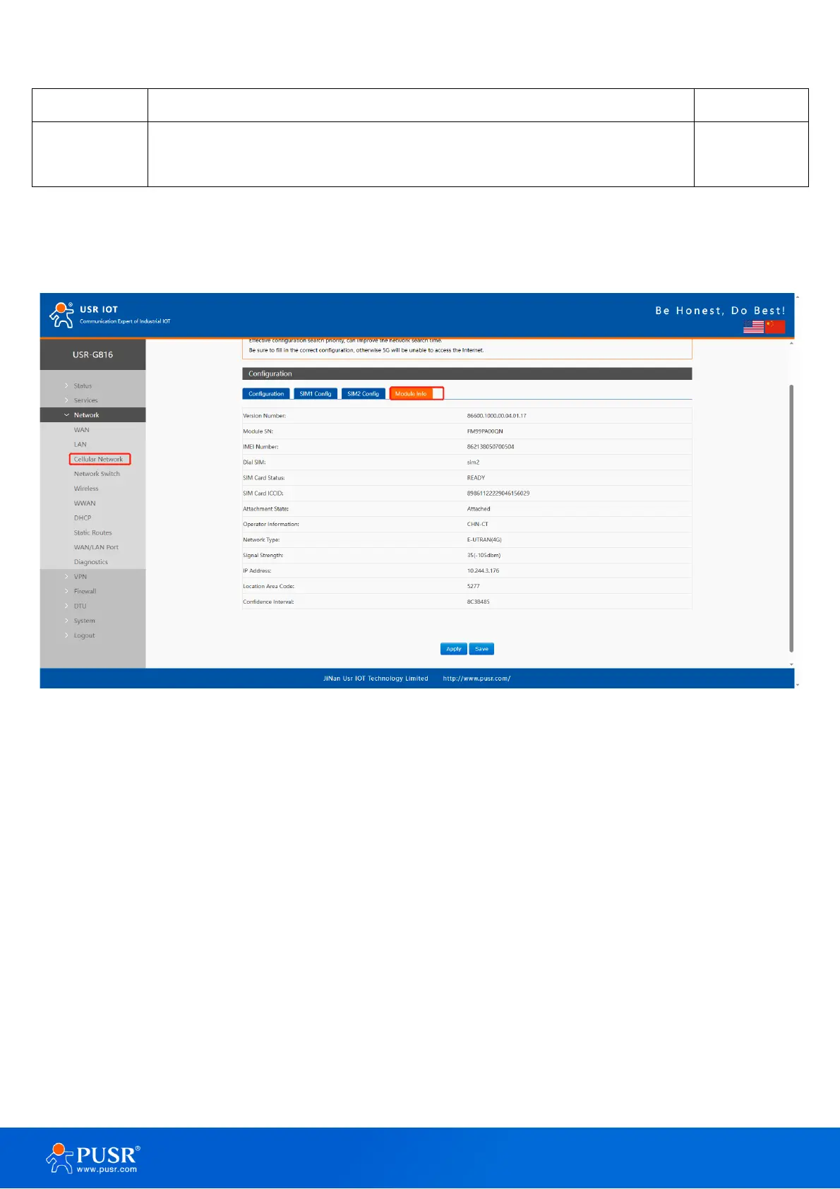 On this page, user can check some information about the SIM card, like the signal strength, the ICCID,