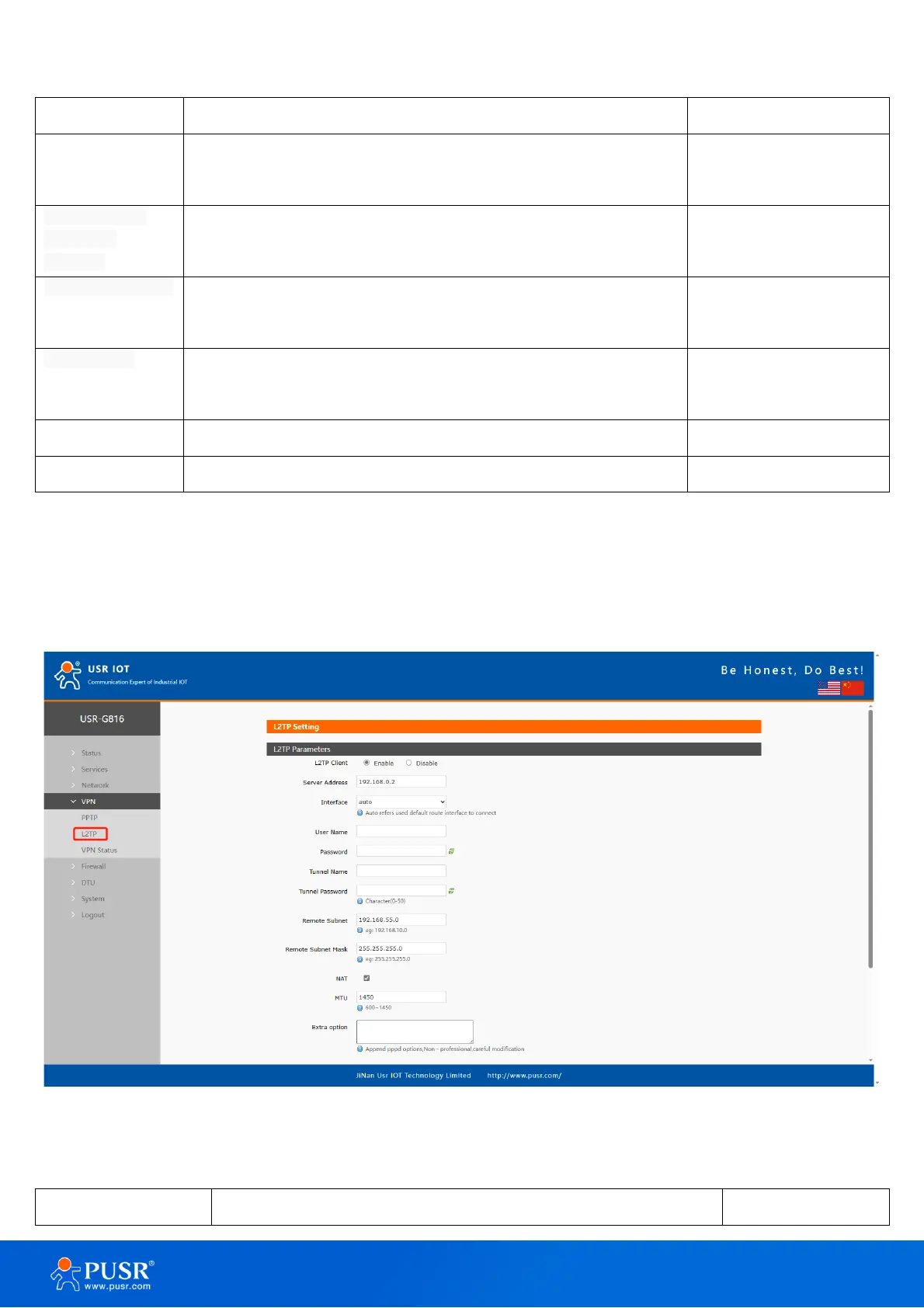 Table 11. Parameter details of L2TP VPN