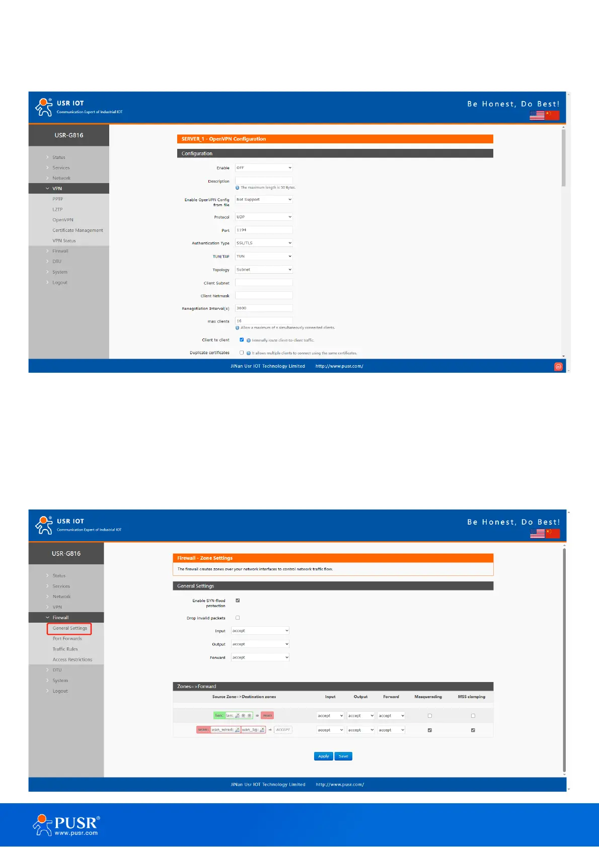 PUSR USR-G816 - Openvpn Server; 6 Firewall; General Settings