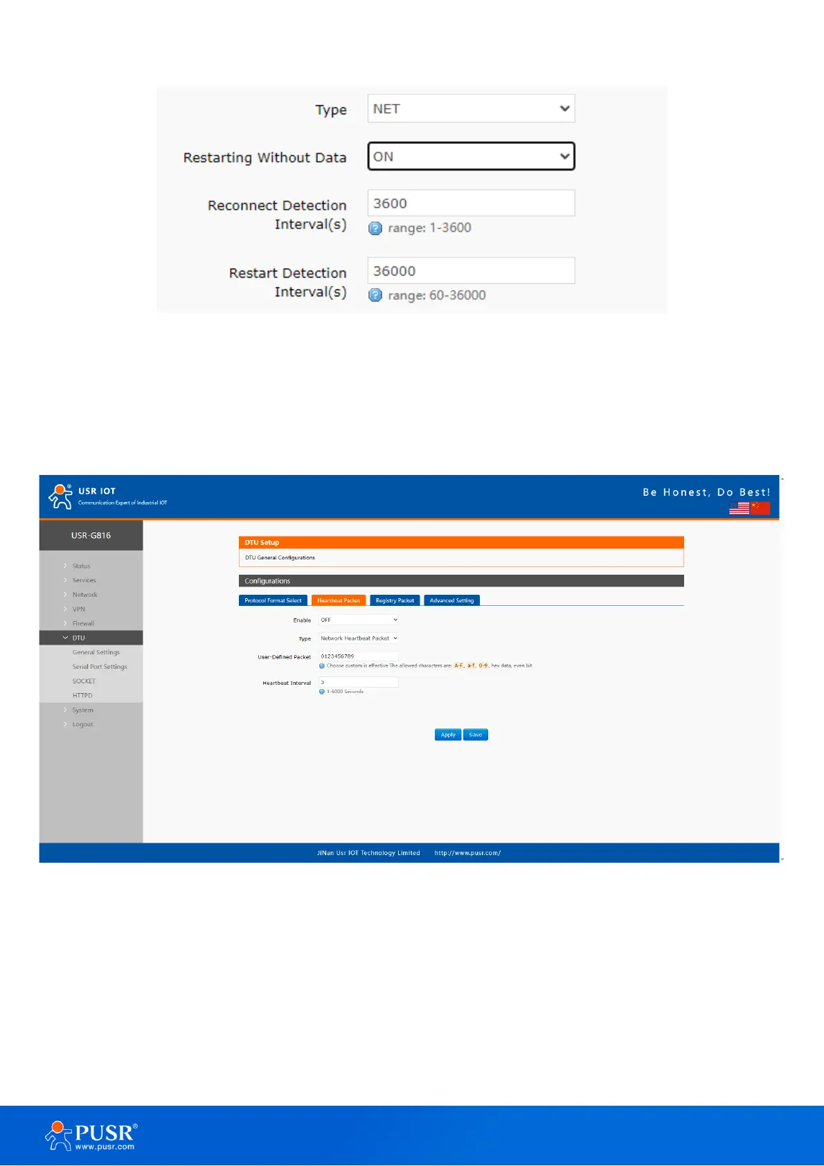 remote server, which is convenient for the server to judge whether USR-G816 is still online.