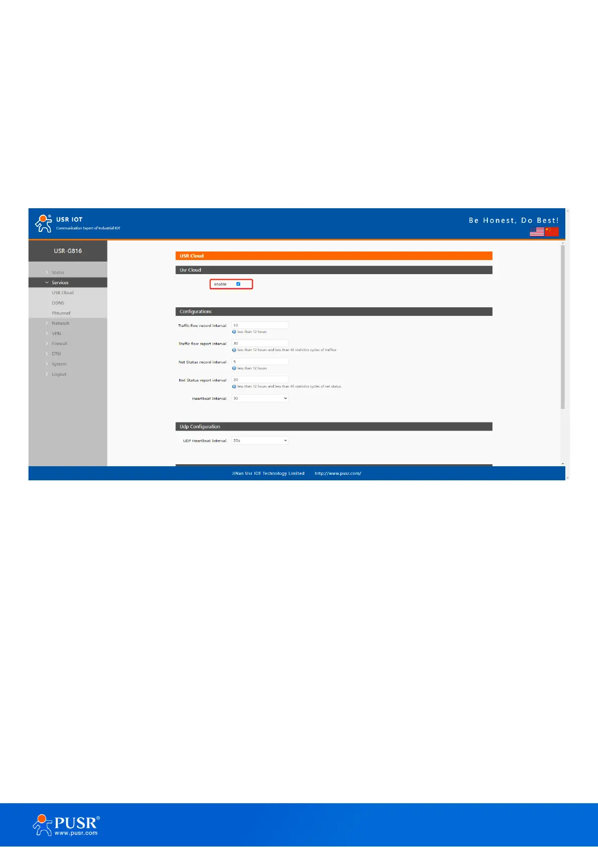 On USR-G816 side, users need enable the PUSR cloud first.