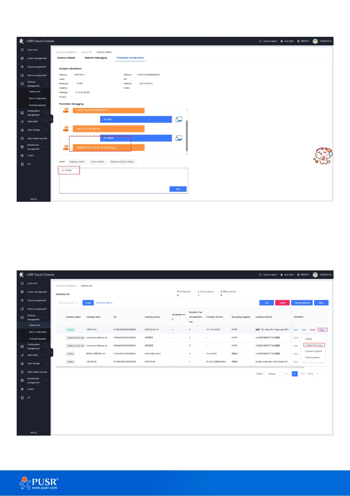 the PUSR platform to view and modify parameters.