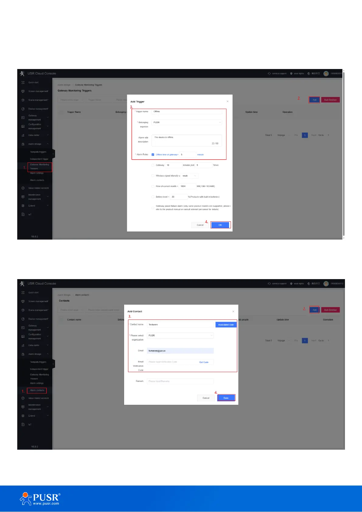 Add alarm trigger type, for USR-G816, we add “Gateway monitoring trigger”.