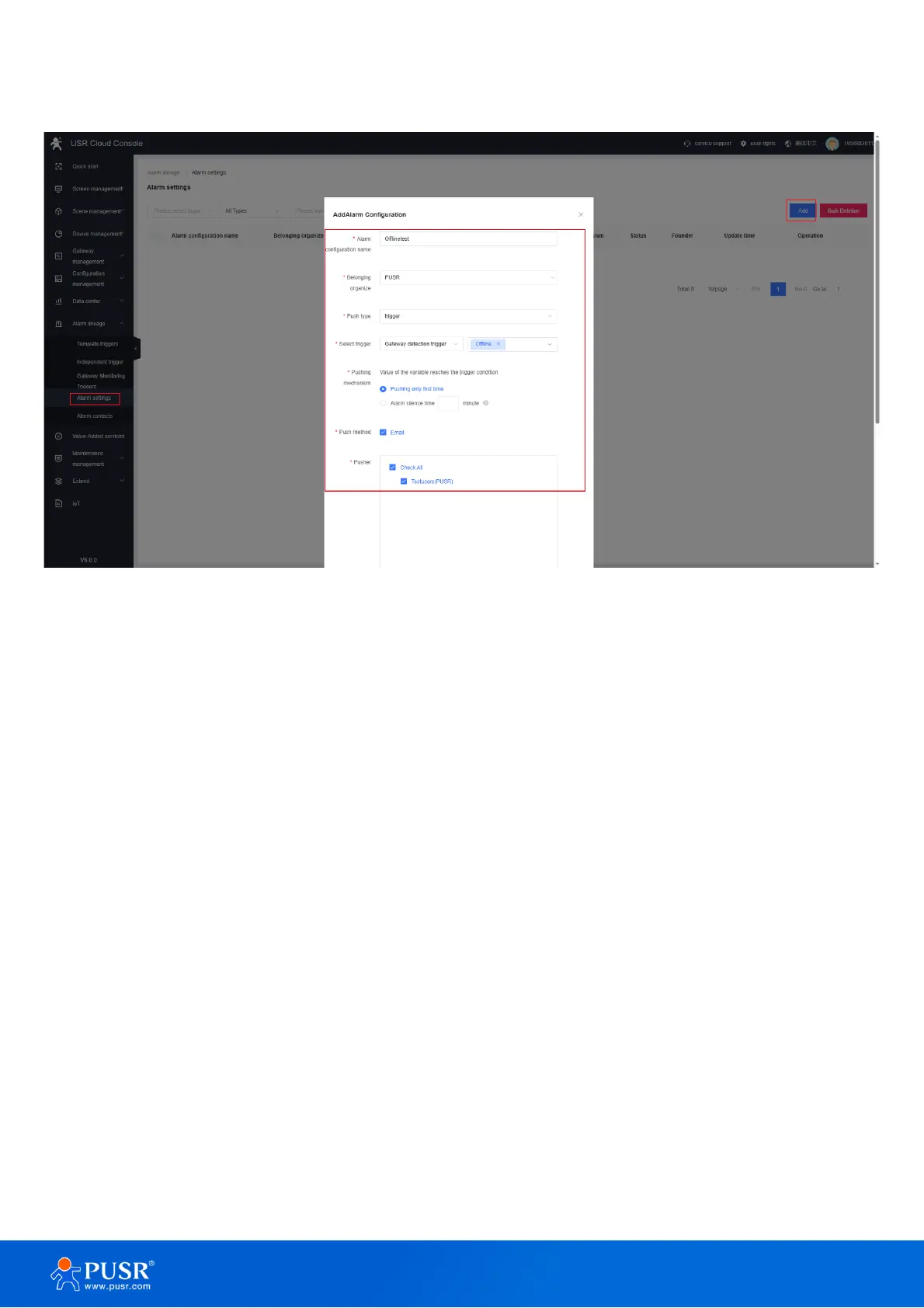 Check the alarm email: Power off the USR-G816