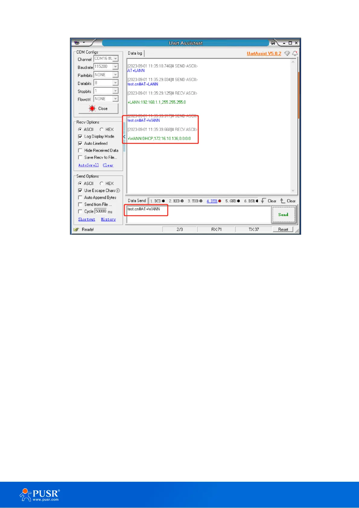 Figure 85. Serial AT command test