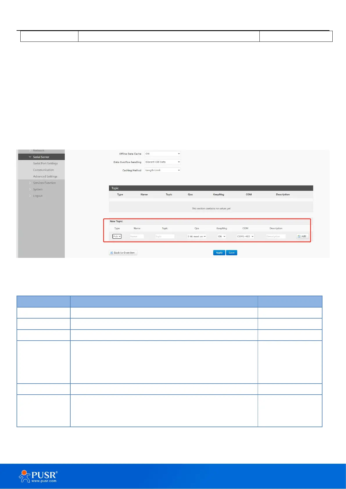 The topic adding function is mainly used to add publishing or subscribing topics. Configuration parameters