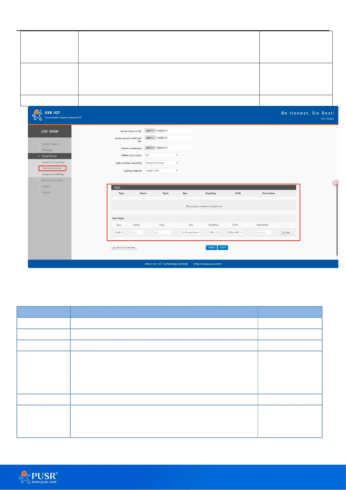 Note: Up to 16 topic rules can be set.
