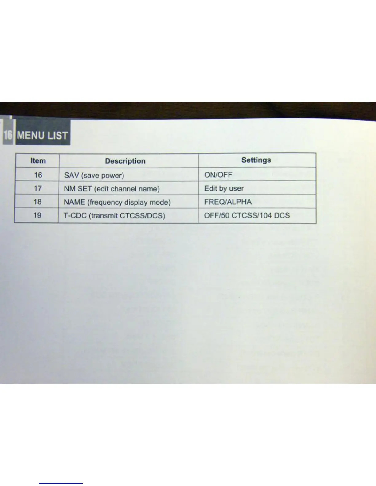 Puxing PX-2R - Menu Item Descriptions (16-19)