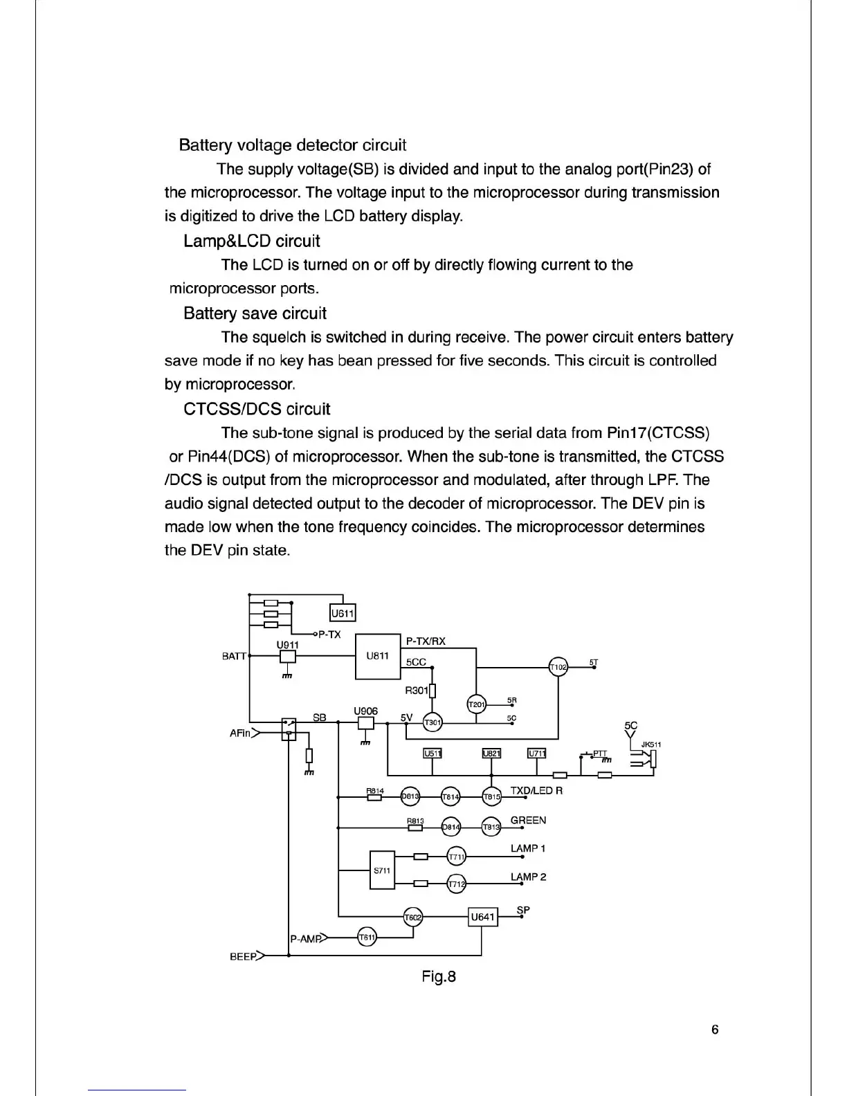 Puxing PX-328 - Circuit Description: Power and Tones; Battery Voltage Detector; Lamp and LCD Circuit; Battery Save Circuit