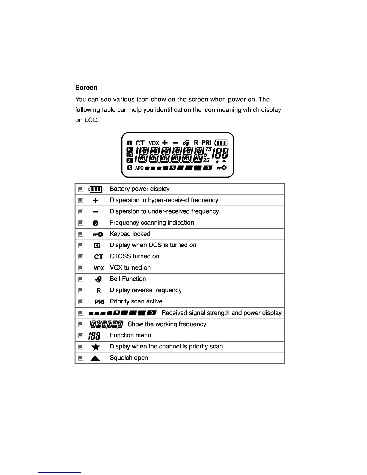 Puxing PX-328 - LCD Display Icons; Screen Icon Identification