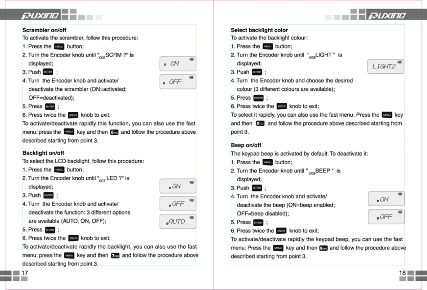 Puxing PX-888 - Advanced Settings and Functions