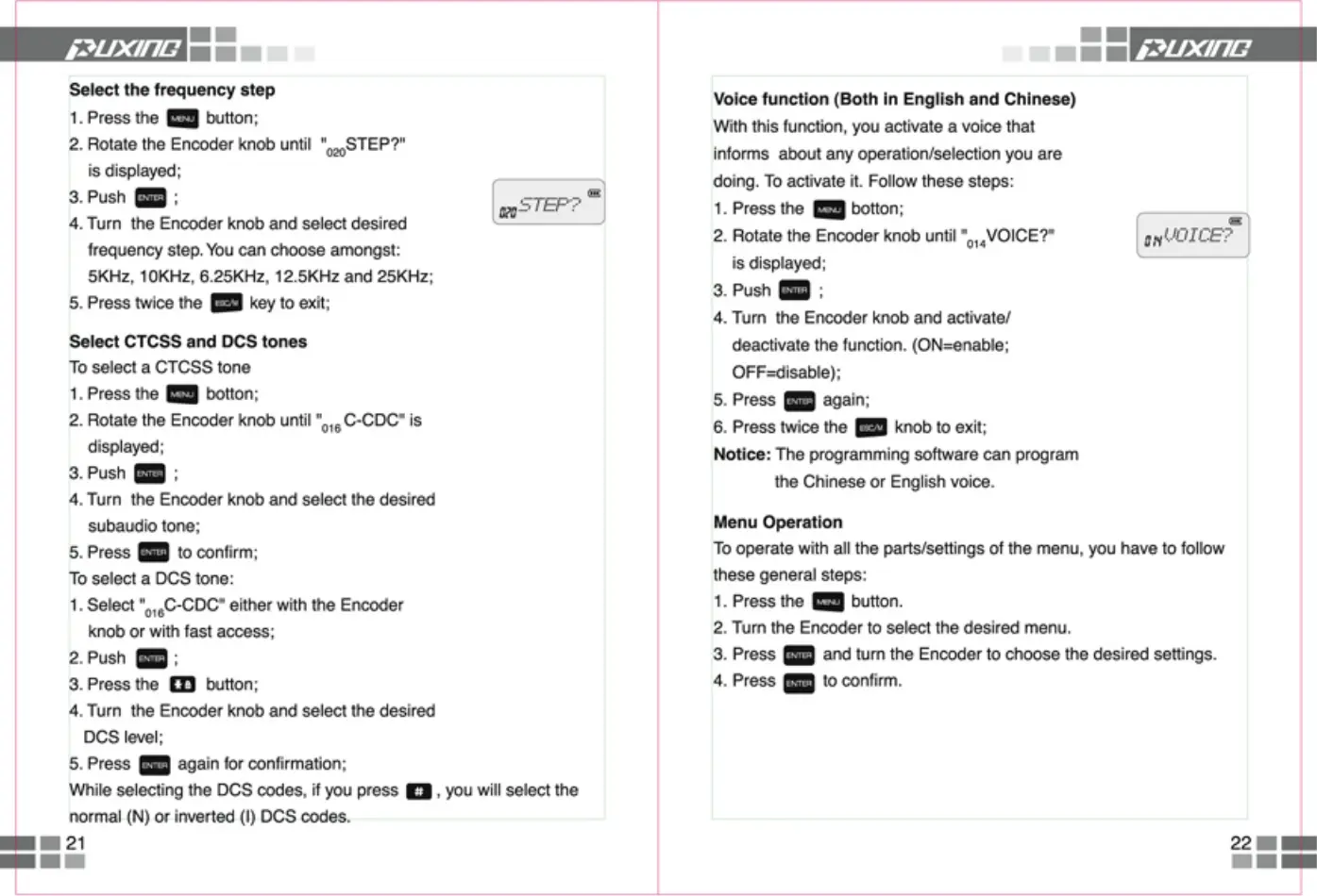 Puxing PX-888 - Frequency and Tone Settings; CTCSS Tone Configuration; DCS Tone Configuration