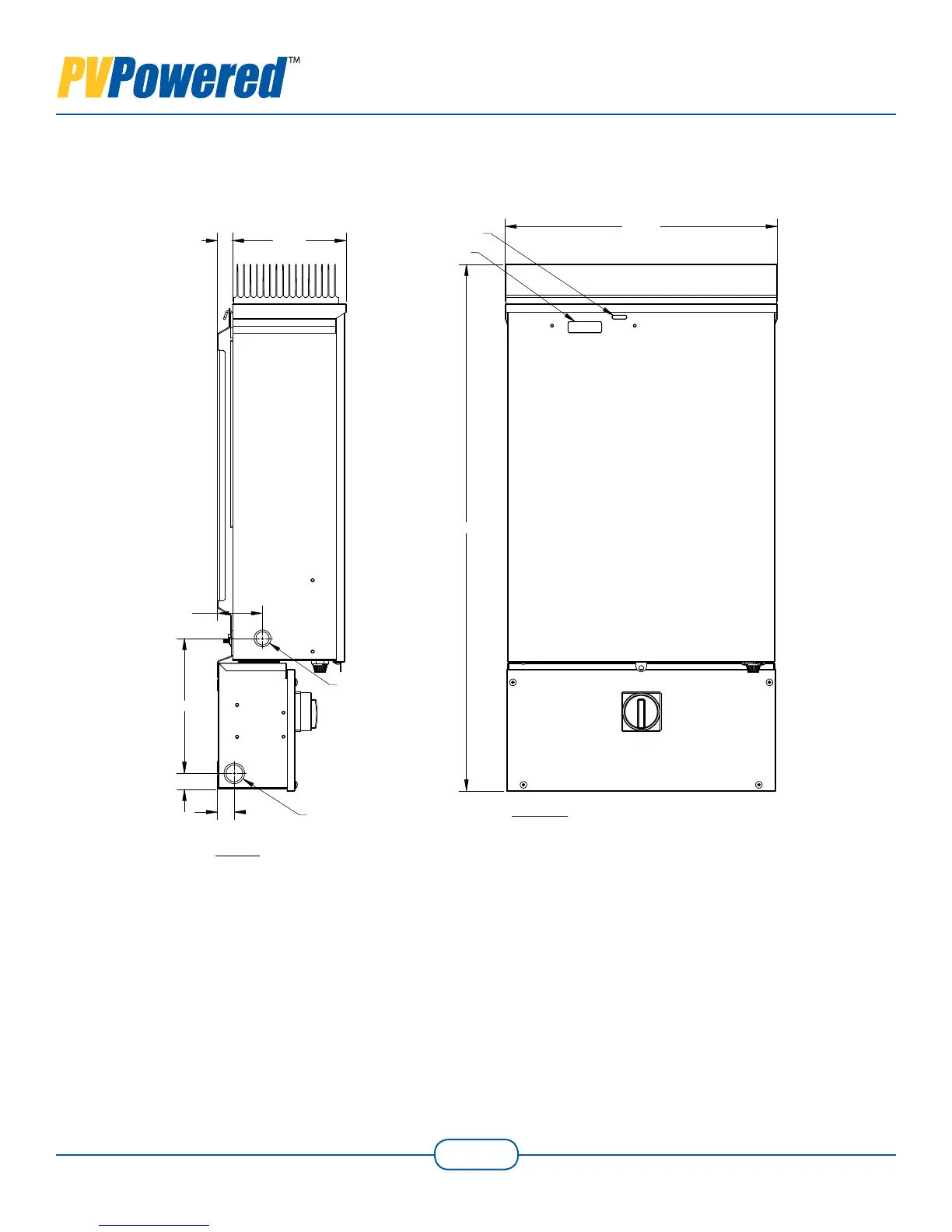 PV Powered Grid-Tied - Figure B-3 Side and Front Views of the PVP4600 W, PVP4800 W, and PVP5200 W Inverter Cabinet