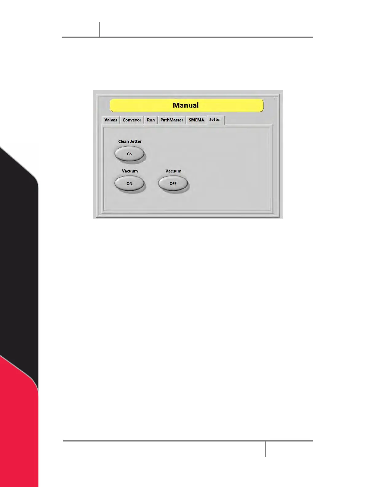 4. Select the VacuumON” and “OFF” buttons to turn the vacuum on and off.