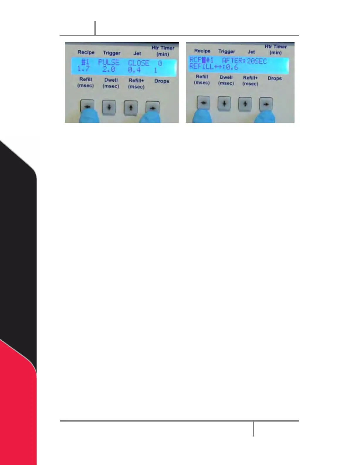 • The RCP: option selects the timing recipe from #1 to #6. The AFTER: and