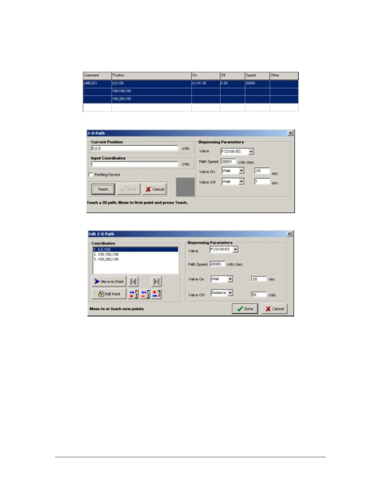 • Teach – Record the current point. Equivalent to the F2 key on the Dispensing System.
