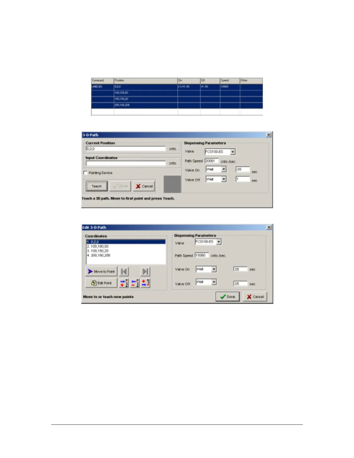 • Teach – Record the current point. Equivalent to the F2 key on the Dispensing System.