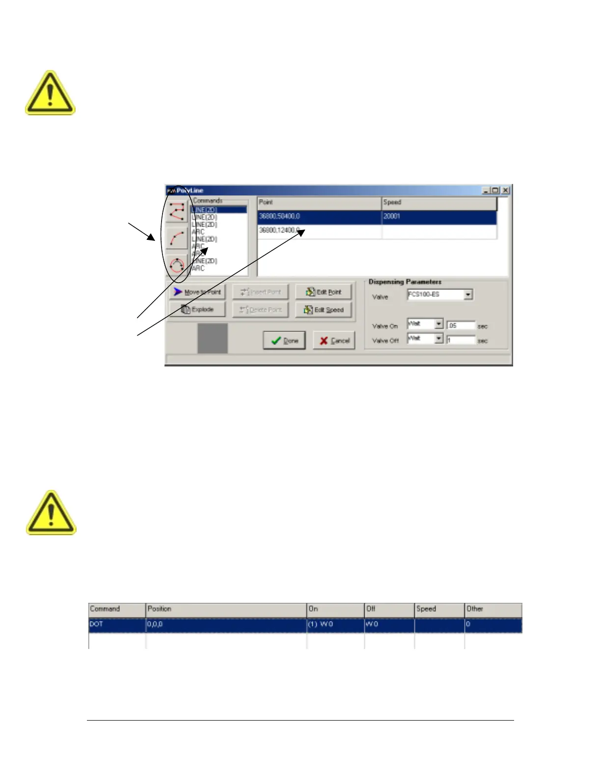 Select a segment in the command list and click the Edit Point button or the Edit Speed button to edit the