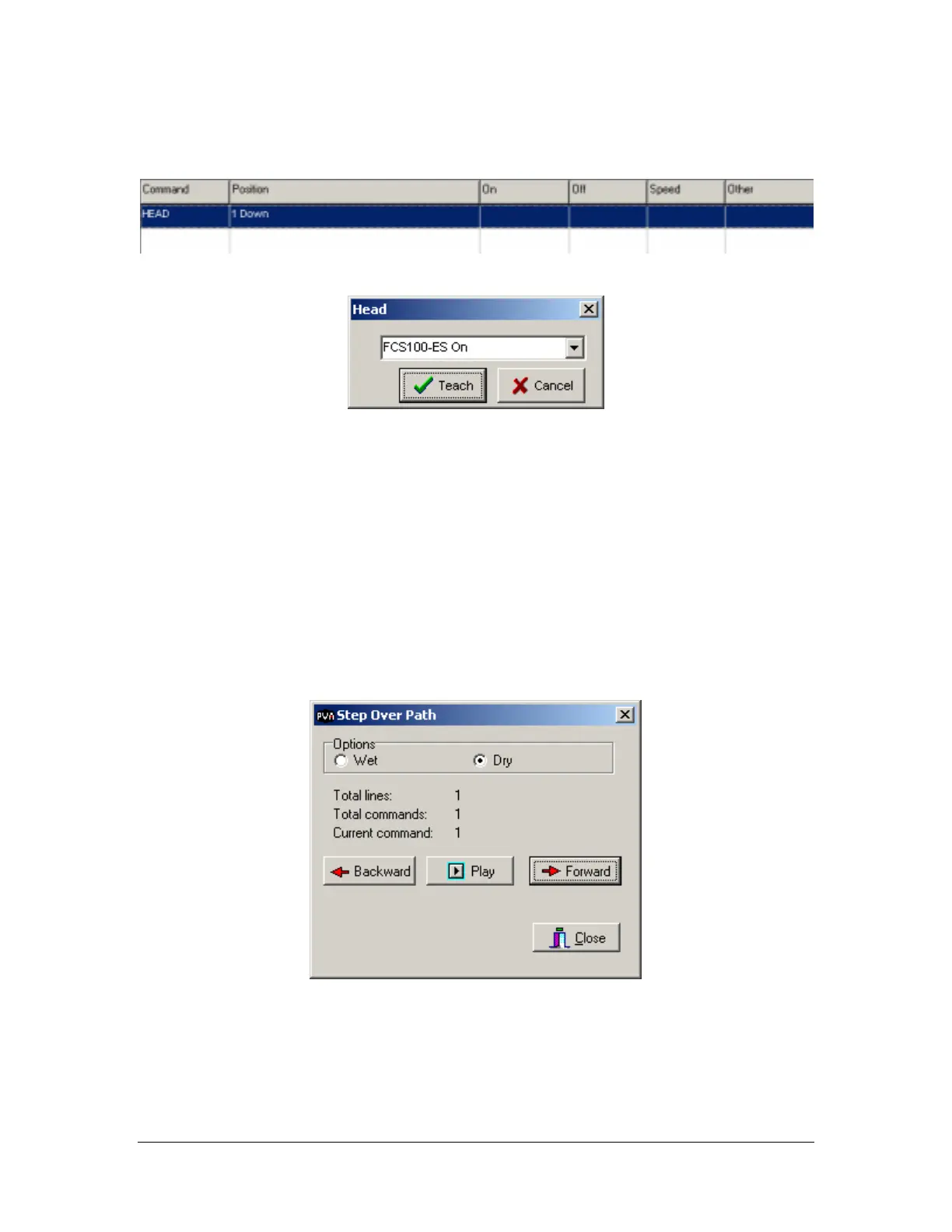 This function allows the operator to enter head (valve) commands into the edit window. The command is