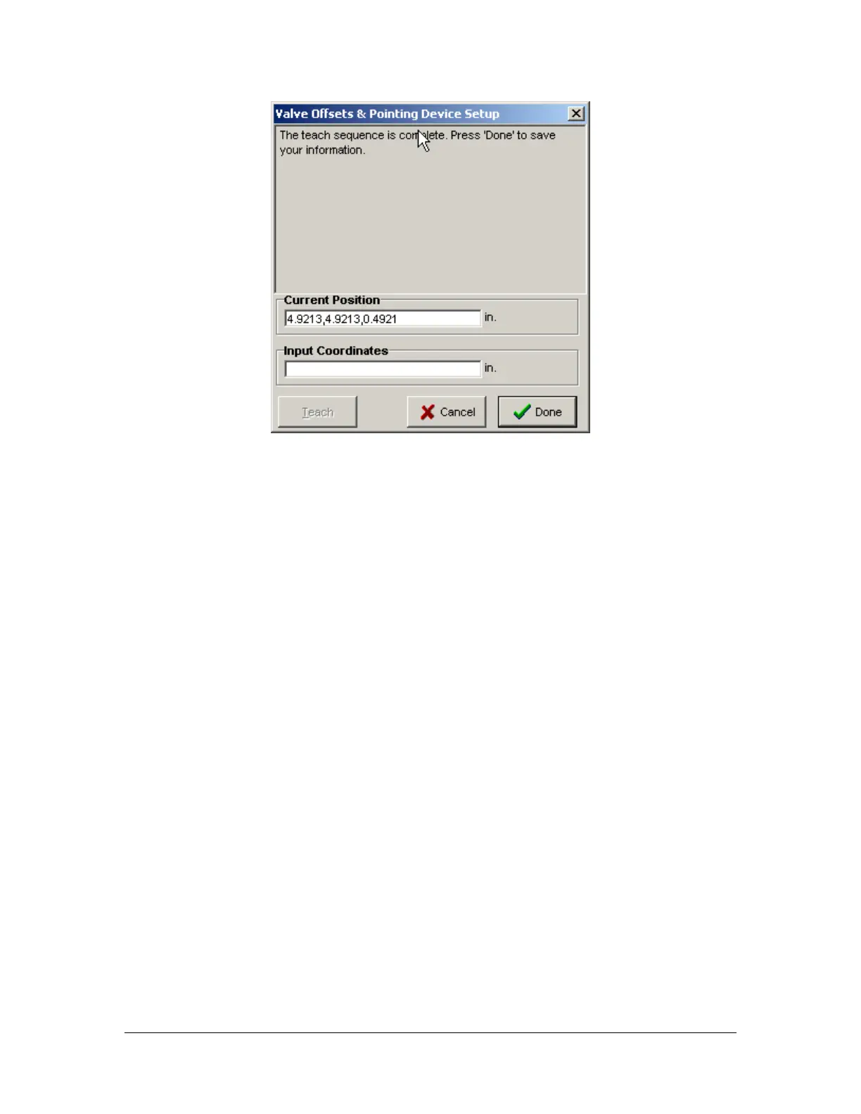 The offsets have been taught. Click the Done button to save the valve offsets.