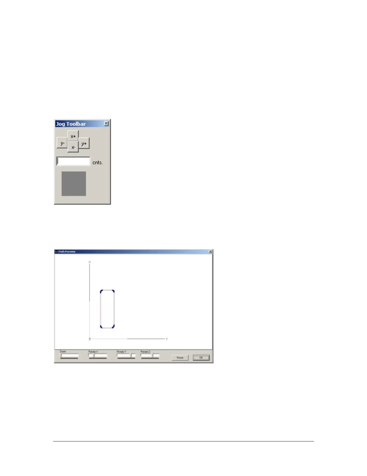 option from the main menu. Enter the distance to jog, and click the button indicating the axis and direction