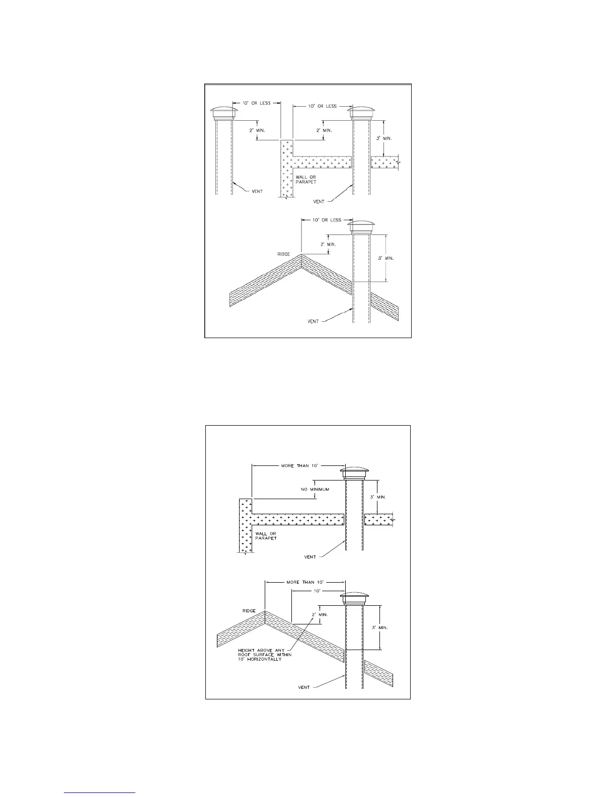 TYPICAL TERMINATION LOCATIONS FOR VERTICAL VENT PIPES