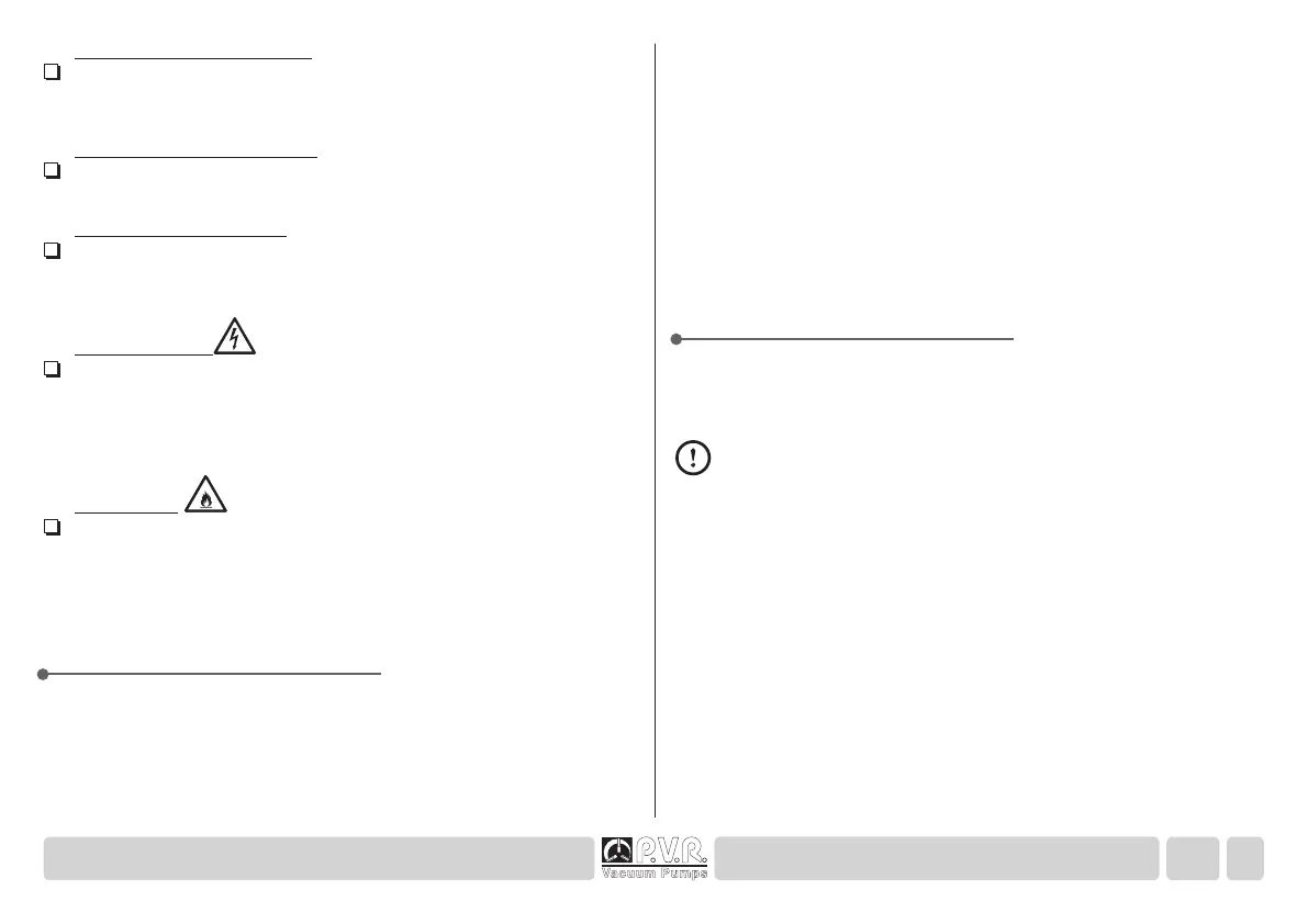 WARNING! The use of the pump for situations unforeseen or not recommended