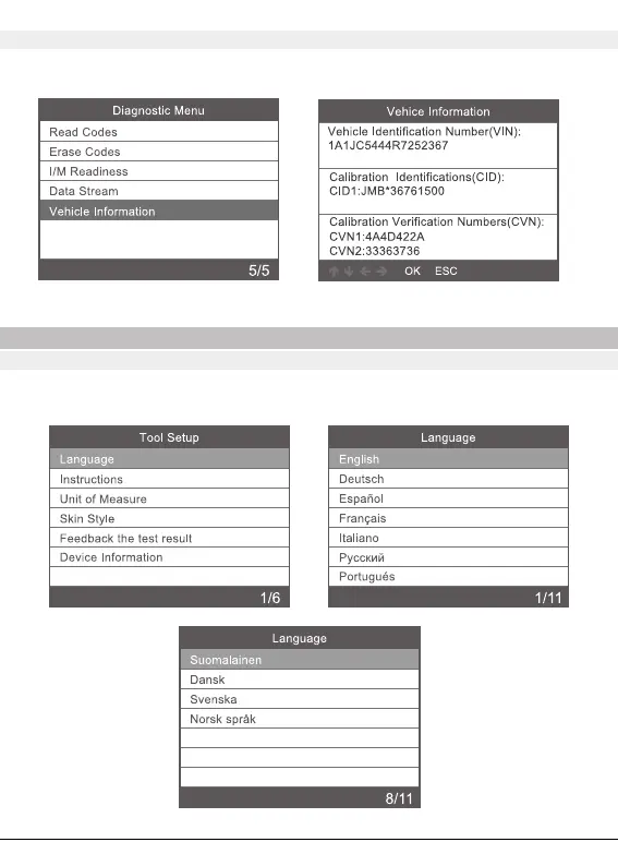 Valitse ajoneuvon tiedot Vehicle information” ja vahvista painamalla OK. Näet ajoneuvon