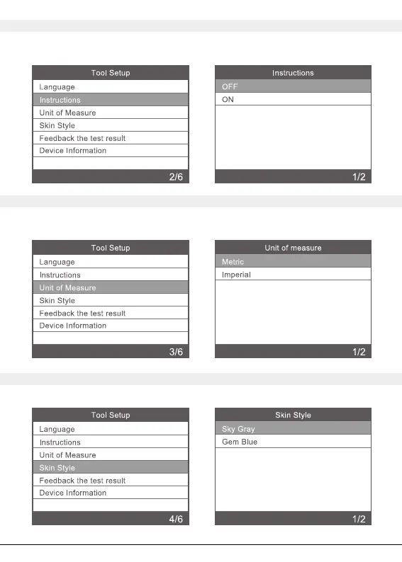 Ulkoasuvalikossa “Skin style voit valita testerin näyttöjen ulkoasun.
