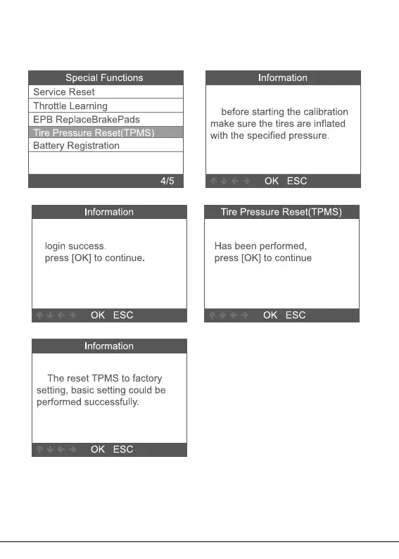 Välj funktionen [Tire Pressure Reset (TPMS)] steg för steg och den visas enligt följande.