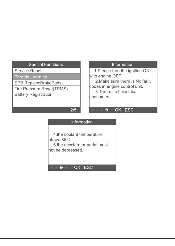Choose [Throttle Learning] function step by step and it displays as follow: