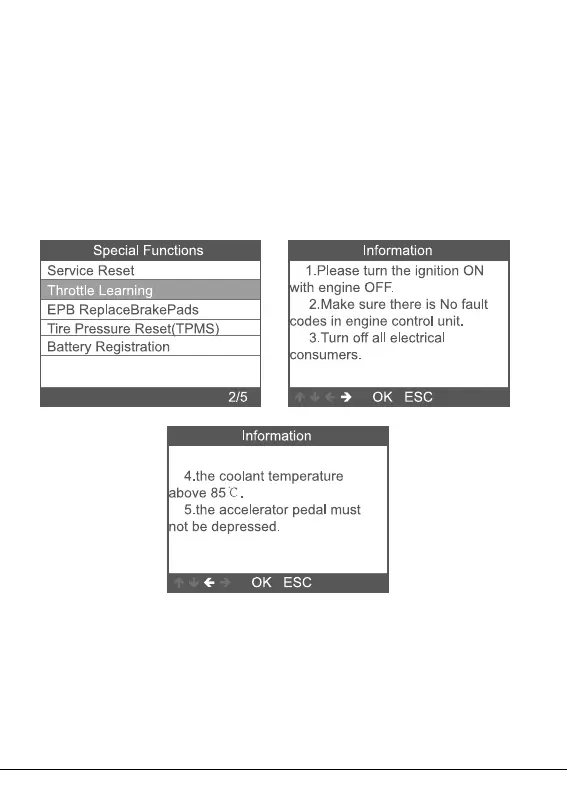 Valige samm-sammult funktsioon [Throttle Learning] (drosselklapi õpetamine), misjärel